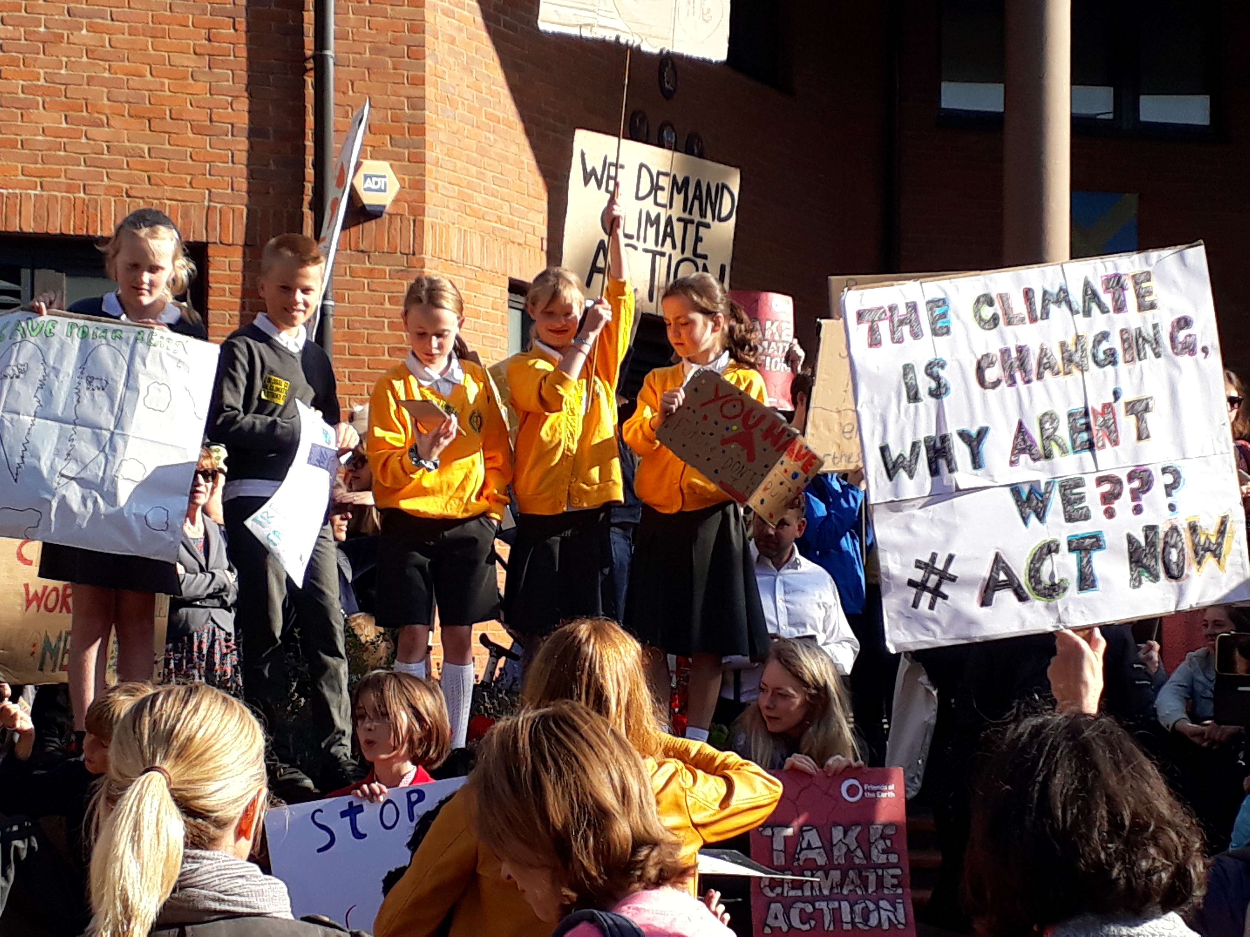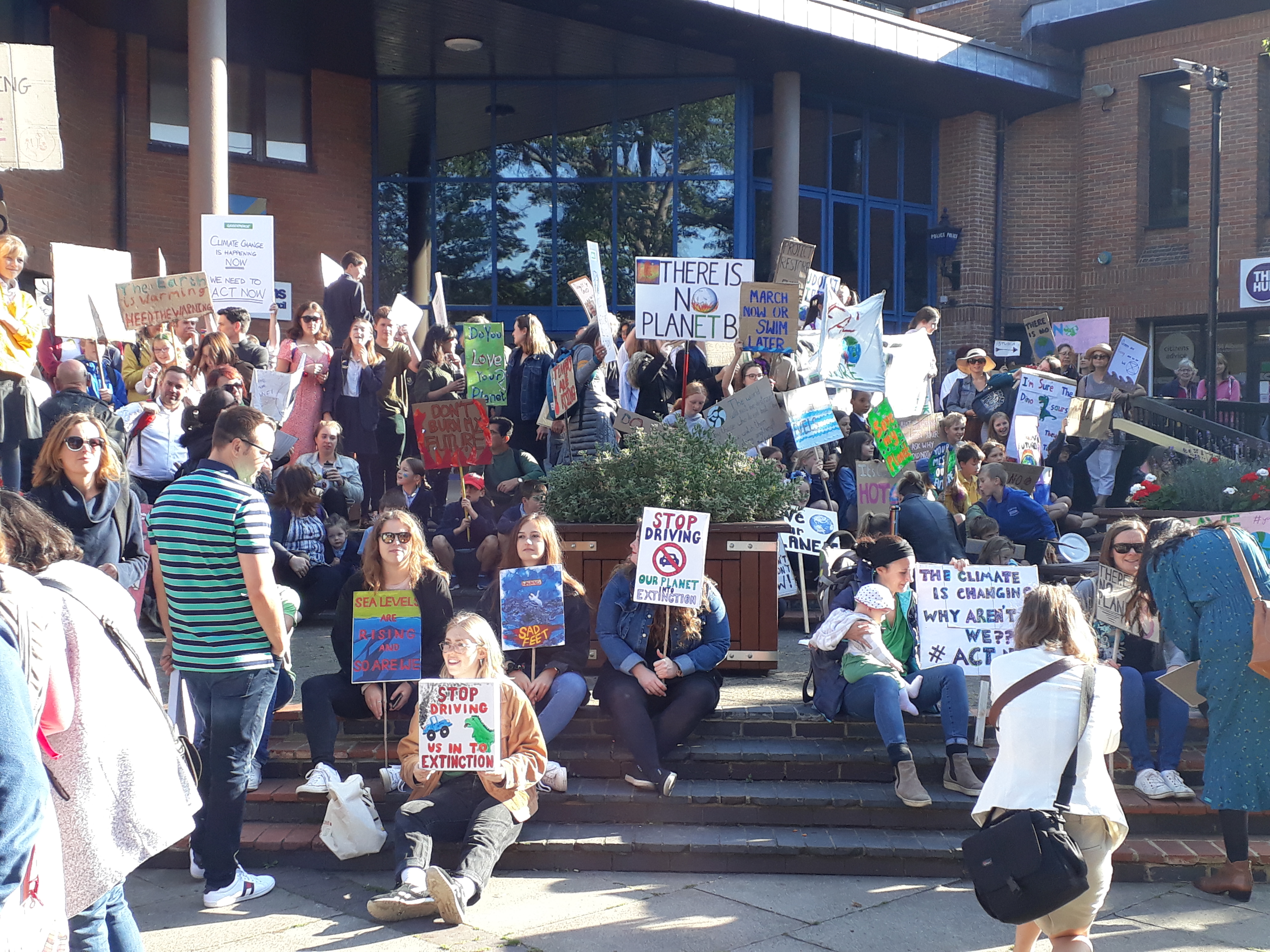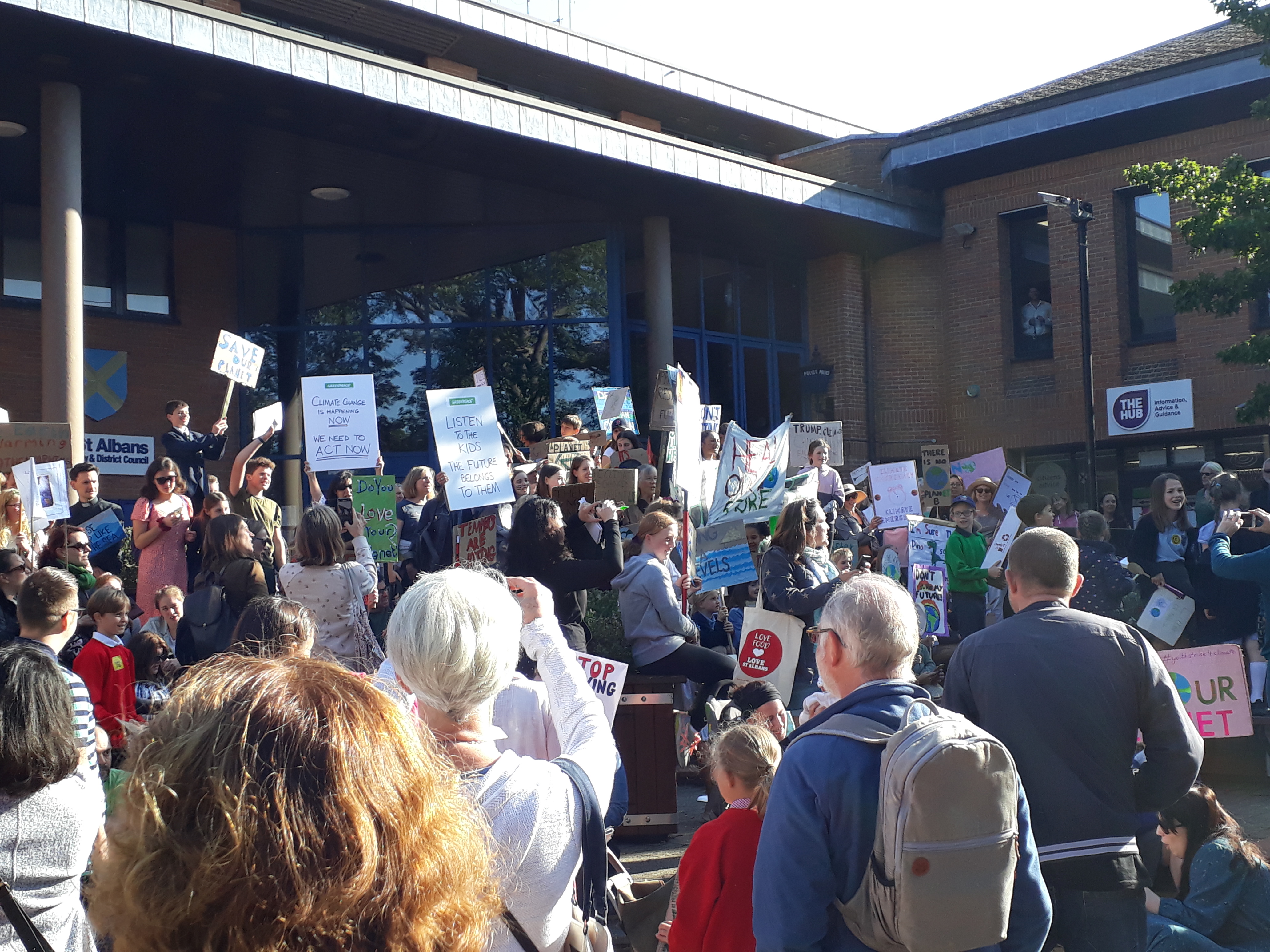 Friday 20 September 2019 saw hundreds of school children and supporting adults on strike for the Climate. Meeting at the clocktower in St Albans the group, with colourful and emphatic banners, marched to the town hall, and then back through the city centre.