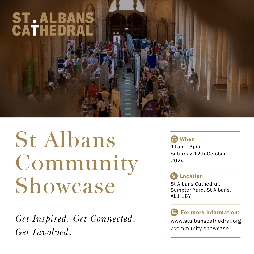 Discover over 60 charities and community organisations at the St Albans Community Showcase on Saturday, October 12th, from 11:00am to 3:00pm in the Nave of St Albans Cathedral. Learn about their impactful work, explore volunteer opportunities, and get inspired. This is a FREE event, no tickets neededโjust drop by for a day of community spirit and inspiration. See you there!